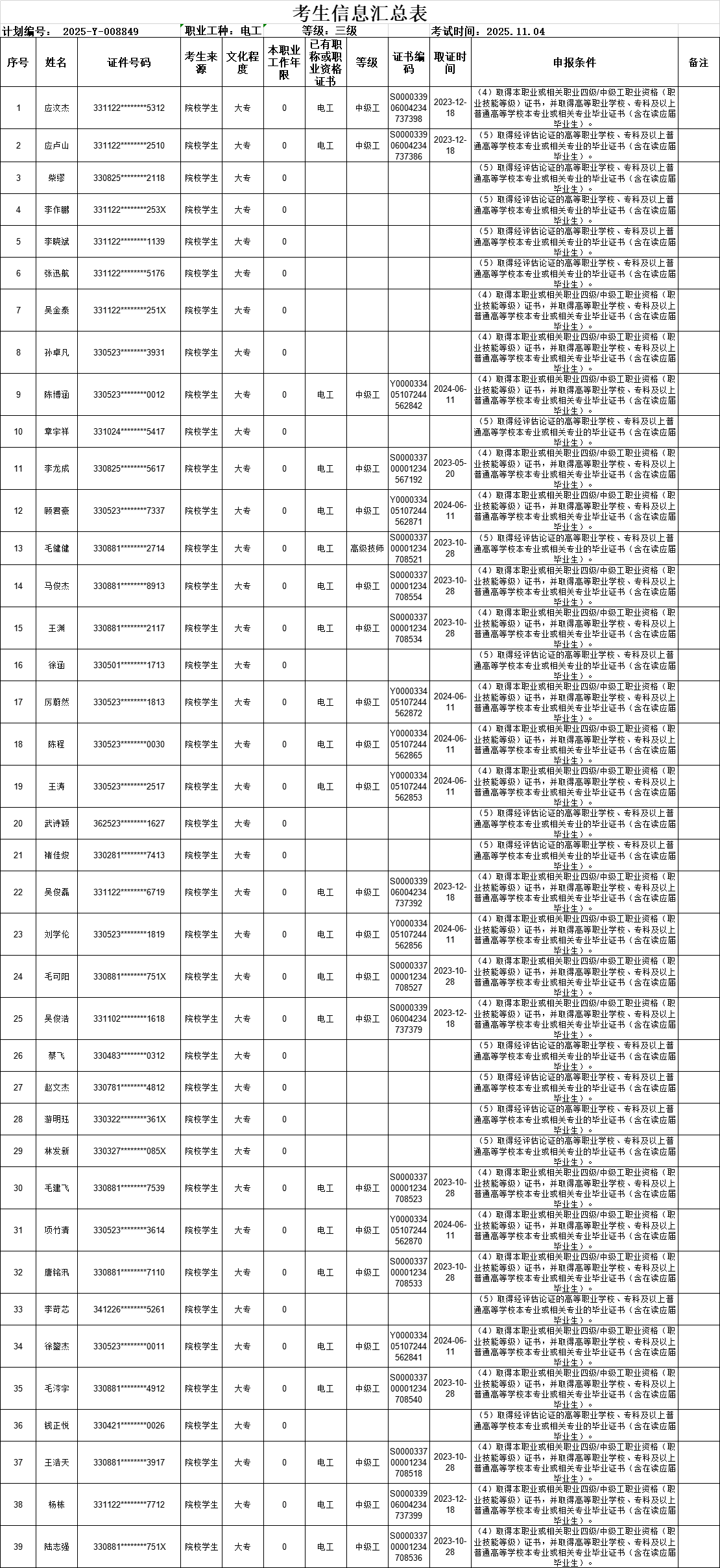 根据《湖州职业技术学院职业技能等级认定计划公告(2025年度)》,经研究决定于2025年11月开展电工高级工职业技能等级认定,现公告如下: