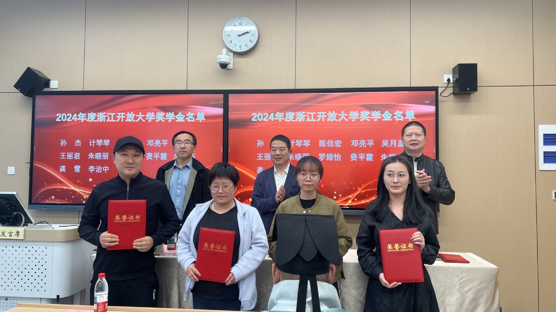 活动现场表彰了国家开放大学奖学金、浙江开放大学奖学金、本科学士学位等获得者及开放大学省、市级优秀毕业生。老生代表褚秋振、新生代表冯雅靖、教师代表朱新宇、班主任代表刘艳娟分别发言,分享了学习心得与成长感悟、教学理念与工作经历。