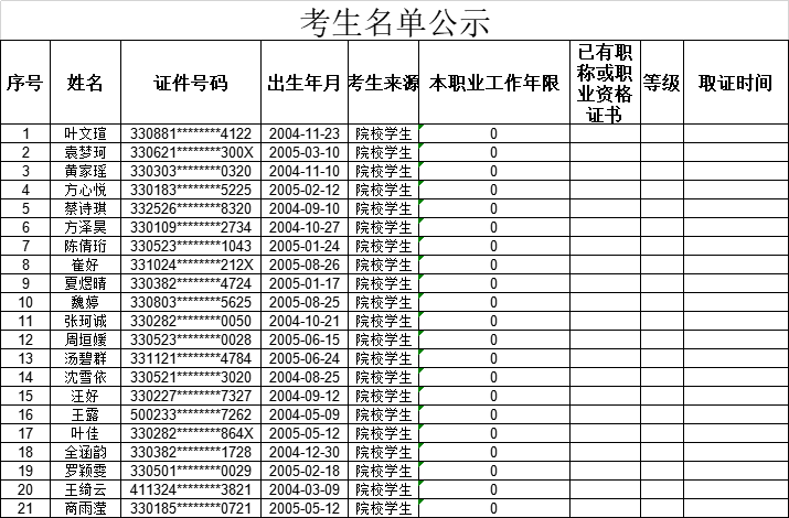 2025-Y-009542 职业技能等级认定报名情况公示