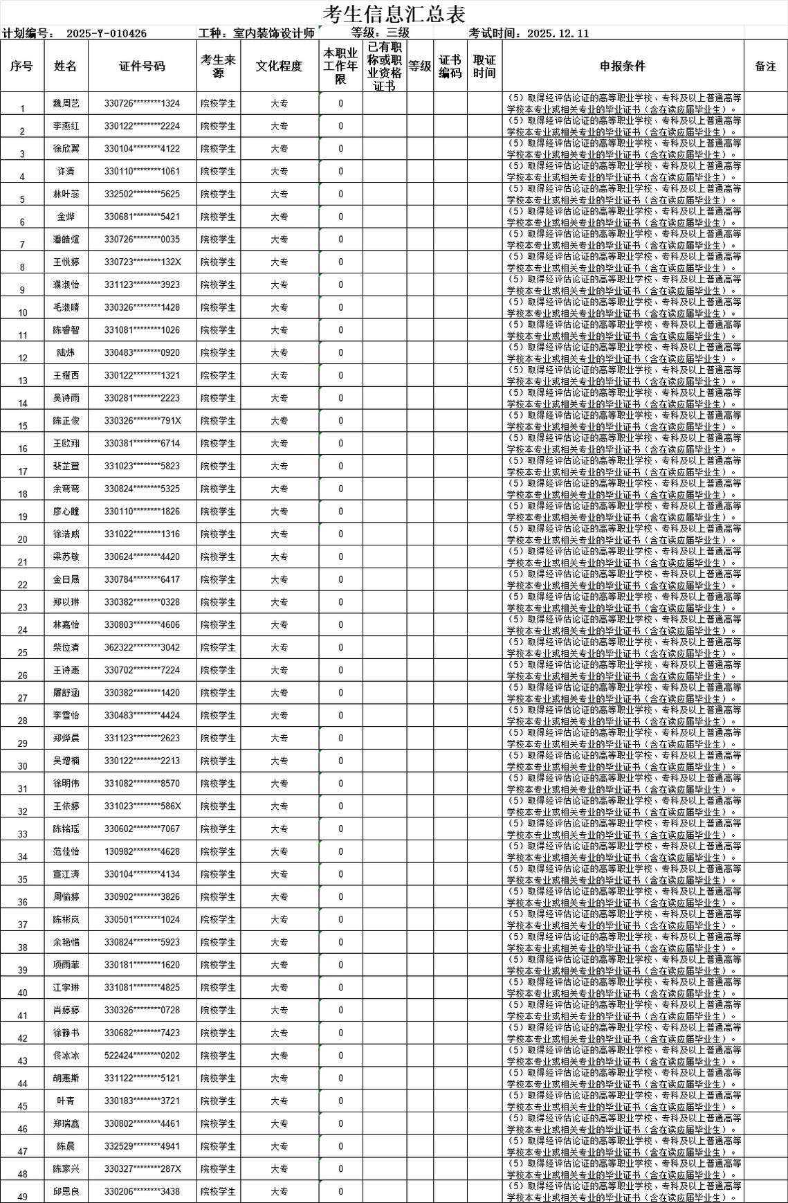 根据《湖州职业技术学院职业技能等级认定计划公告(2025年度)》,经研究决定于2025年12月开展室内装饰设计师高级工职业技能等级认定,现公告如下: