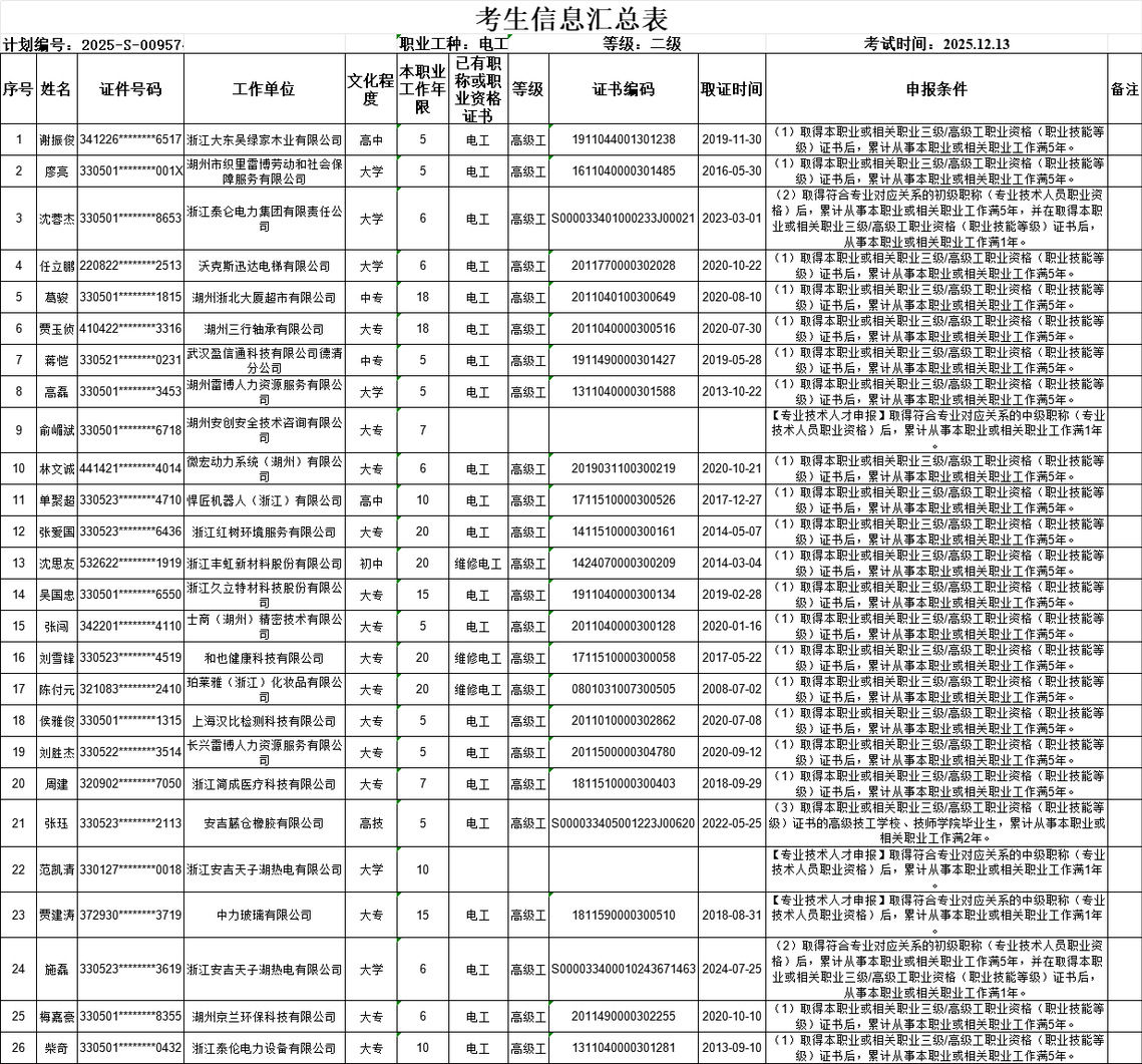 根据《湖州职业技术学院职业技能等级认定计划公告(2025年度)》,经研究决定于2024年12月开展电工技师职业技能等级认定,现公告如下: