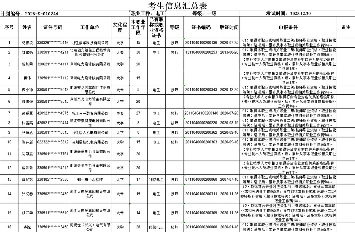 根据《湖州职业技术学院职业技能等级认定计划公告(2025年度)》,经研究决定于2025年12月开展电工高级技师职业技能等级认定,现公告如下: